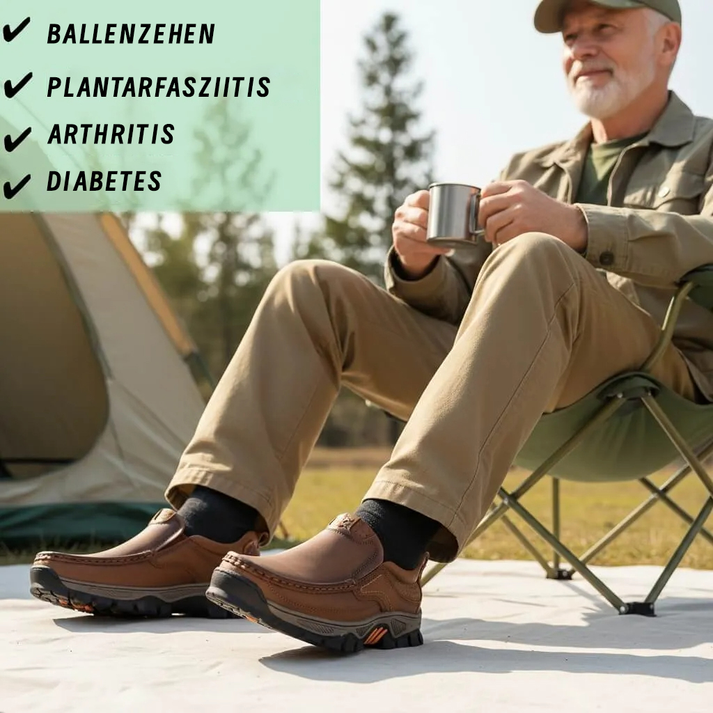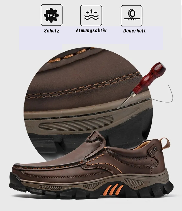 ▶Couro genuíno 👞: O material superior de alta qualidade em couro oferece excelente respirabilidade e flexibilidade, mantendo os pés secos e confortáveis. É estável, resistente a arranhões e resiste a torções – para máxima durabilidade.